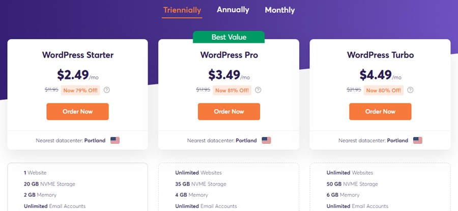 Step 2: Choose the best web hosting and select a relevant hosting plan for your new website, and click on the Order Now button.